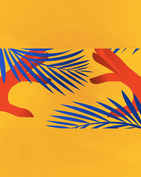 The illustrations were made thinking of a jungle oneiric imaginary; eyes, hands, natural elements and textures mix to give a surreal feel. The movements are soft and organic, with strong color changes on the beat to synchronize it with the music. I focused on the use of soft gradients that could give depth to the illustrations, and make the public feel more welcome in the imaginary jungle.