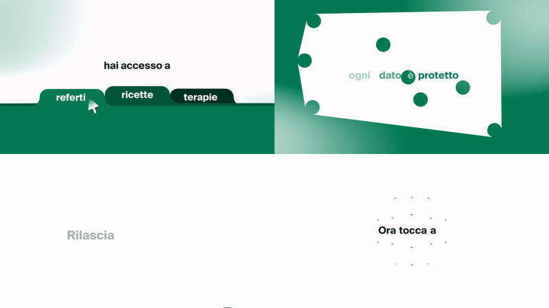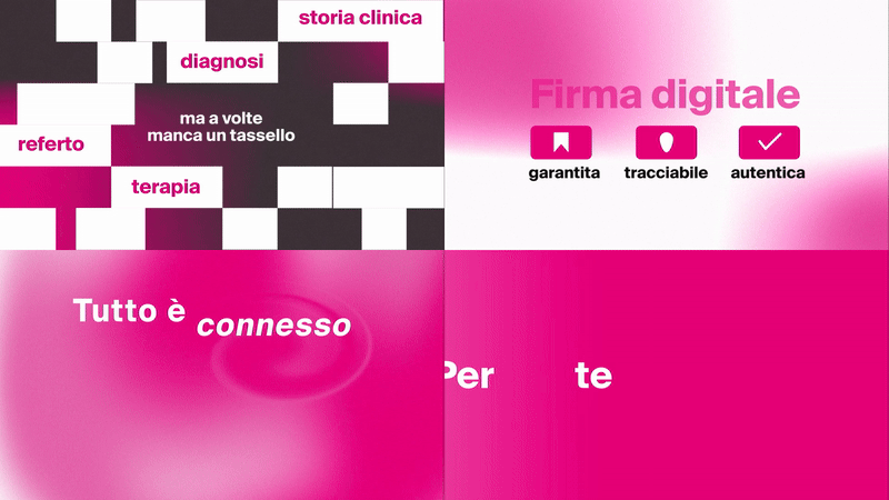 I then brought the logo and the dynamic gradient to life, using color transitions and fluid movements to express the concepts of connection, accessibility, and continuity that define the service. Building on this visual foundation, I created two animated videos: one for internal communication, aimed at doctors and healthcare professionals, and one for external communication, directed at citizens. Both videos use movement and gradient flow as key narrative elements to communicate the value of a digital tool that simplifies and enhances healthcare for everyone.