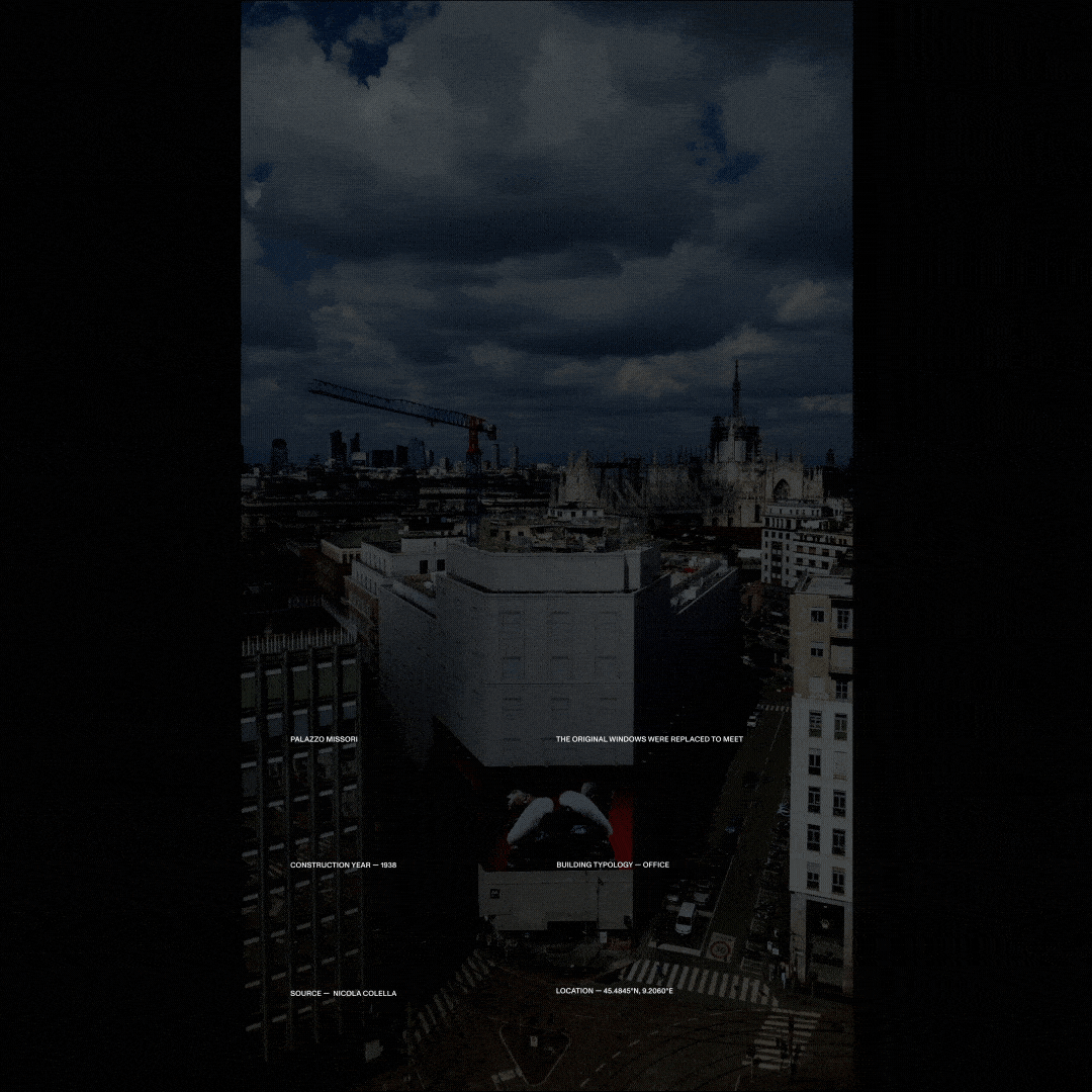 I helped bring these ideas to motion through a large-scale video installation collaborating directly with Accurat, blending documentary footage and immersive data visualizations. The piece includes a research-based map of reclaimable materials in Milan and highlights urban mining’s potential to reshape the construction industry. After the exhibition, all materials will return to their original sites for reuse.